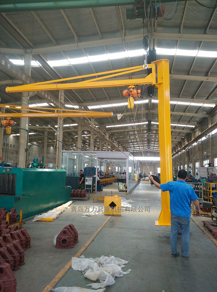 要設(shè)計(jì)方案的專用型起重機(jī)械。具備構(gòu)造新奇、有效、簡(jiǎn)易、實(shí)際操作方便使用、旋轉(zhuǎn)靈便、安全作業(yè)室內(nèi)空間大等優(yōu)勢(shì),是環(huán)保節(jié)能高效率的原材料吊裝武器裝備??善毡檫\(yùn)用于廠礦、生產(chǎn)車間的生產(chǎn)流水線、裝配流水線和數(shù)控車床的上下左右鋼件及庫(kù)房、港口等場(chǎng)所的吊物吊裝。本機(jī)由立桿、旋轉(zhuǎn)懸臂及環(huán)鏈電動(dòng)葫蘆等構(gòu)成。立桿下方固定不動(dòng)于混凝土基本上,懸臂旋轉(zhuǎn),可依據(jù)客戶要求開展旋轉(zhuǎn)。