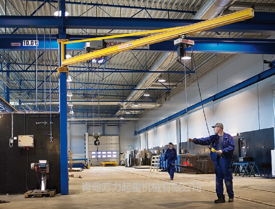 墻壁式起重機(jī)是安裝在支撐性混凝土墻上、立柱或其他承重部件上,因此它的決定性優(yōu)勢是節(jié)省地面立柱空間,它安裝簡單,現(xiàn)成的標(biāo)準(zhǔn)化支架節(jié)省了大量復(fù)雜的校正工作。