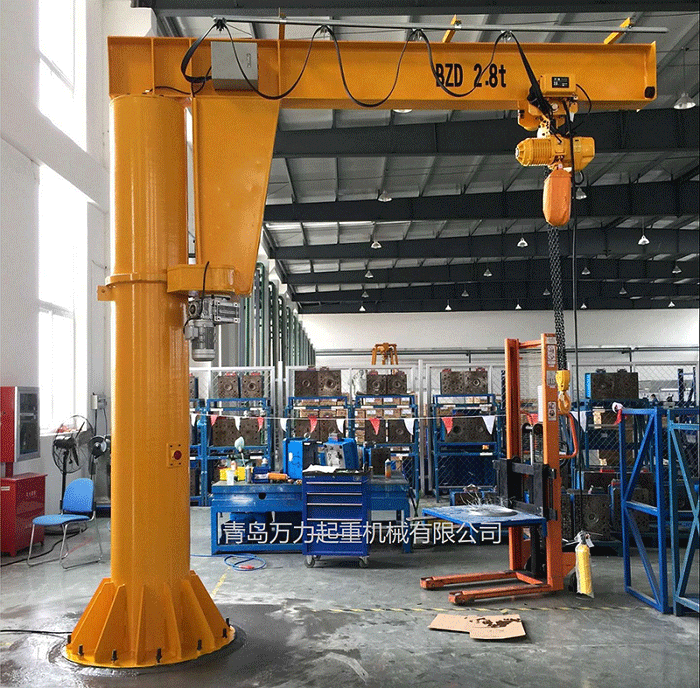 要設(shè)計(jì)方案的專用型起重機(jī)械。具備構(gòu)造新奇、有效、簡易、實(shí)際操作方便使用、旋轉(zhuǎn)靈便、安全作業(yè)室內(nèi)空間大等優(yōu)勢,是環(huán)保節(jié)能高效率的原材料吊裝武器裝備??善毡檫\(yùn)用于廠礦、生產(chǎn)車間的生產(chǎn)流水線、裝配流水線和數(shù)控車床的上下左右鋼件及庫房、港口等場所的吊物吊裝。本機(jī)由立桿、旋轉(zhuǎn)懸臂及環(huán)鏈電動葫蘆等構(gòu)成。立桿下方固定不動于混凝土基本上,懸臂旋轉(zhuǎn),可依據(jù)客戶要求開展旋轉(zhuǎn)。