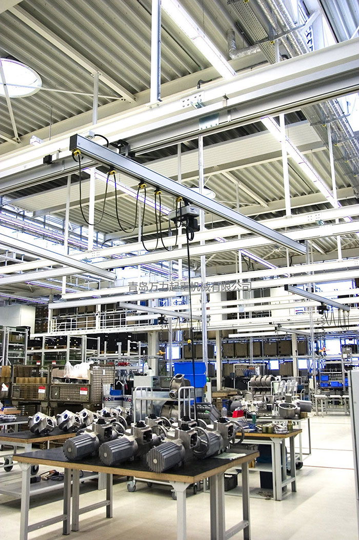 鋁合金組合式起重機(jī)由鋁合金規(guī)范組件組成,各規(guī)范模塊之間只需用螺栓銜接即可使用,可節(jié)約工廠的空間和面積,從而下降能耗,能可靠地完結(jié)特定區(qū)域內(nèi)的物料輸送以及各種部件的定位,系統(tǒng)能夠手動操作,也能夠完結(jié)主動、半主動操作,運(yùn)行。能夠簡略地懸掛于修建房頂或上部結(jié)構(gòu)上,起重機(jī)軌道無需額定的輔助支撐,無論是服務(wù)于車間的部分或者悉數(shù),都能夠簡略可靠地裝置,本錢較低。組合式起重機(jī)能夠完成艱巨的高架起重任務(wù),能夠承擔(dān)頻繁的高架物料輸送作業(yè);可裝置在任何一般15cm厚的鋼筋混凝土地面上,不會給修建物的房頂結(jié)構(gòu)施加壓力,使用預(yù)制規(guī)范的模組化規(guī)劃結(jié)構(gòu),可輕松地跟著作業(yè)單元中心的擴(kuò)展而擴(kuò)展。