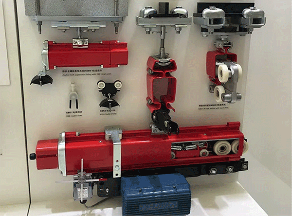 Ⅲ、安裝小車、吊線滑塊或電動驅(qū)動裝置,安裝中間緩沖器,安裝防撞限位端蓋和軌端電纜夾。