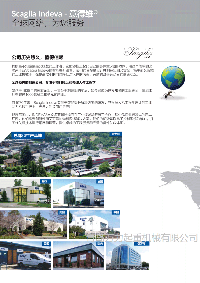 1、Scaglia集團(tuán)成立于1838年,專注于物料搬運(yùn)及工業(yè)操縱器,INDEVA自1975年開(kāi)始開(kāi)發(fā)和生產(chǎn)了世界上第一臺(tái)電子智能助力機(jī)械手。